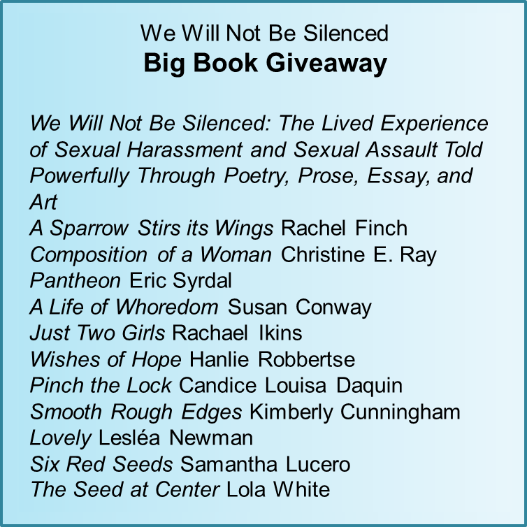 In honor of the launch of We Will Not Be Silenced, we are holding an amazing Big Book Giveaway! Two lucky winners in the U.S. or Canada will receive an assortment of six books each, including a copy of We Will Not Be Silenced. A lucky International winner will receive four books, including We Will Not Be Silenced.